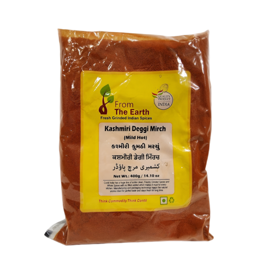 From The Earth Kashmiri Deggi Mirch (Mild Hot) – Vibrant Color, Gentle Heat Add a splash of rich red color and a touch of warmth to your dishes wit...