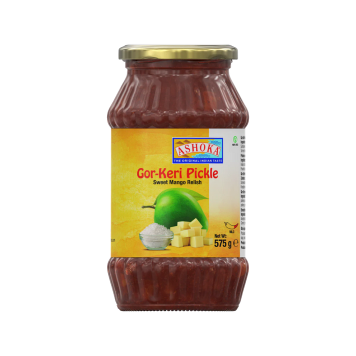 Ashoka Gor Keri Pickle is a traditional Gujarati delicacy that is sure to tantalize your taste buds. Prepared with a unique blend of spices, this pickle is made with sun-dried mango pieces, asafoetida, fenugreek seed, turmeric, and other ingredients to create an exquisite flavor. Enjoy this pickle as a side dish with any meal or as a condiment with snacks. It can also be used as a topping for sandwiches, chaats, and dosas. A great way to add a burst of flavor to your meals, this pickle will surely become a staple in your kitchen.